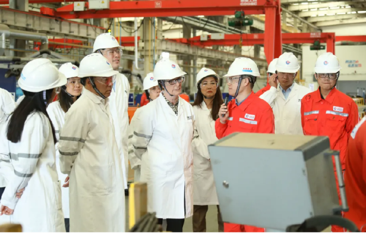 During the visit, Hilary Mercer and her delegation visited the Digital Simulation Center of COOEC Design Company and Tianjin Intelligent Manufacturing Base. Hilary Mercer spoke highly of achievements in intelligent manufacturing and digital applications, and was full of expectations for the future digital transformation of the oil and gas industry. The two sides exchanged views on the adoption of intelligent manufacturing to improve production efficiency.